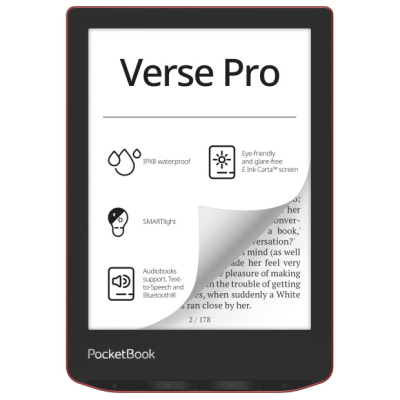 PocketBook з радістю представляє 6-дюймовий флагманський рідер Verse Pro, який поєднує в собі неперевершену функціональність і виняткову компактність. Розроблений, щоб підняти ваше читання на новий рівень, PocketBook Verse Pro може похвалитися такими просунутими функціями, як підтримка аудіокниг, Text-to-Speech, Bluetooth, адаптивне підсвічування