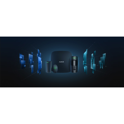 - централь сигналізації Ajax Hub 2 – контролює роботу всіх приладів сигналізації. Три канали зв'язку – Ethernet і GSM з підтримкою 2 сім-карт;