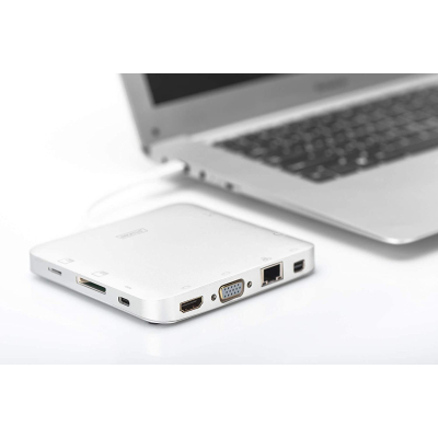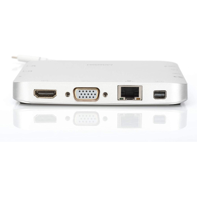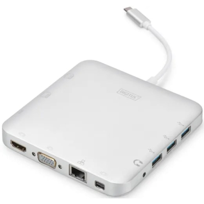Повнофункціональна універсальна док-станція USB Type-C™ від Digitus пропонує все необхідне для створення повністю обладнаного робочого місця. Він пропонує три відеоінтерфейси (HDMI, MiniDP і VGA), де два монітори можуть працювати одночасно. Таким чином досягається максимально можливий підтримуваний дозвіл: Brilliant UHD (4K2K/30Hz). Крім того, він пропонує три порти USB 3.0, де один порт (5 В / 1,5 А) також забезпечує функцію зарядки мобільних пристроїв. Інтерфейси USB доповнюються USB - C з функцією подачі живлення (PD).Характеристики