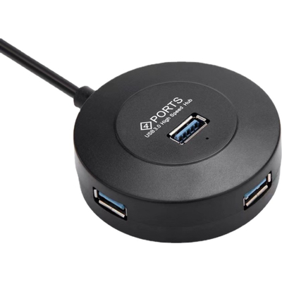 Хаб KH304-A має круглу форму, а USB-порти розташовані з різних сторін і на великій відстані один від одного, це допомагає задіяти всі порти хаба таким чином, що пристрої не заважають один одному. Функція "швидкої заміни" дозволяє підключати/вимикати пристрої без вимкнення системи. Хаб має вбудований кабель завдовжки 30 см (він не від'єднується від хаба).