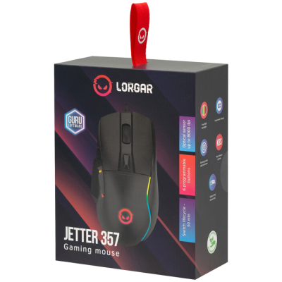 Отримайте максимальну віддачу з Jetter 357 - дуже легкою та ергономічною ігровою мишею. Тридцять мільйонів натискань і ігровий датчик Pixart ATG4090 із роздільною здатністю до 8000 DPI зроблять ваші ігрові сесії безперервними. Завдяки 6 програмованим кнопкам ви можете створювати власні комбінації, а система Key Bakance зараховує кожен клік.Покращена система підсвічування RGB в Jetter 357 і 6 режимів ефектів підсвічування дозволять налаштувати зовнішній вигляд миші відповідно до вашої ігрової системи. Відкрийте для себе ефективність із програмним забезпеченням Lorgar GURU: перегляньте швидкість миші, діапазон відстані, загальну кількість кліків тощо.