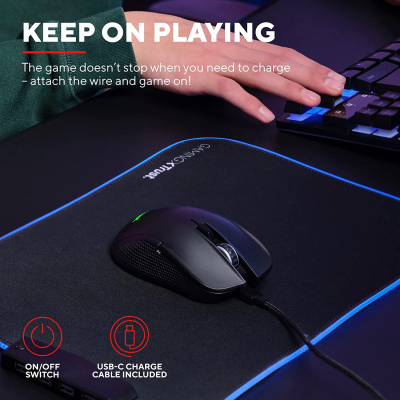 Беспроводная игровая мышь с полной светодиодной RGB-подсветкой и 50 часами времени работы от аккумулятораХарактеристики